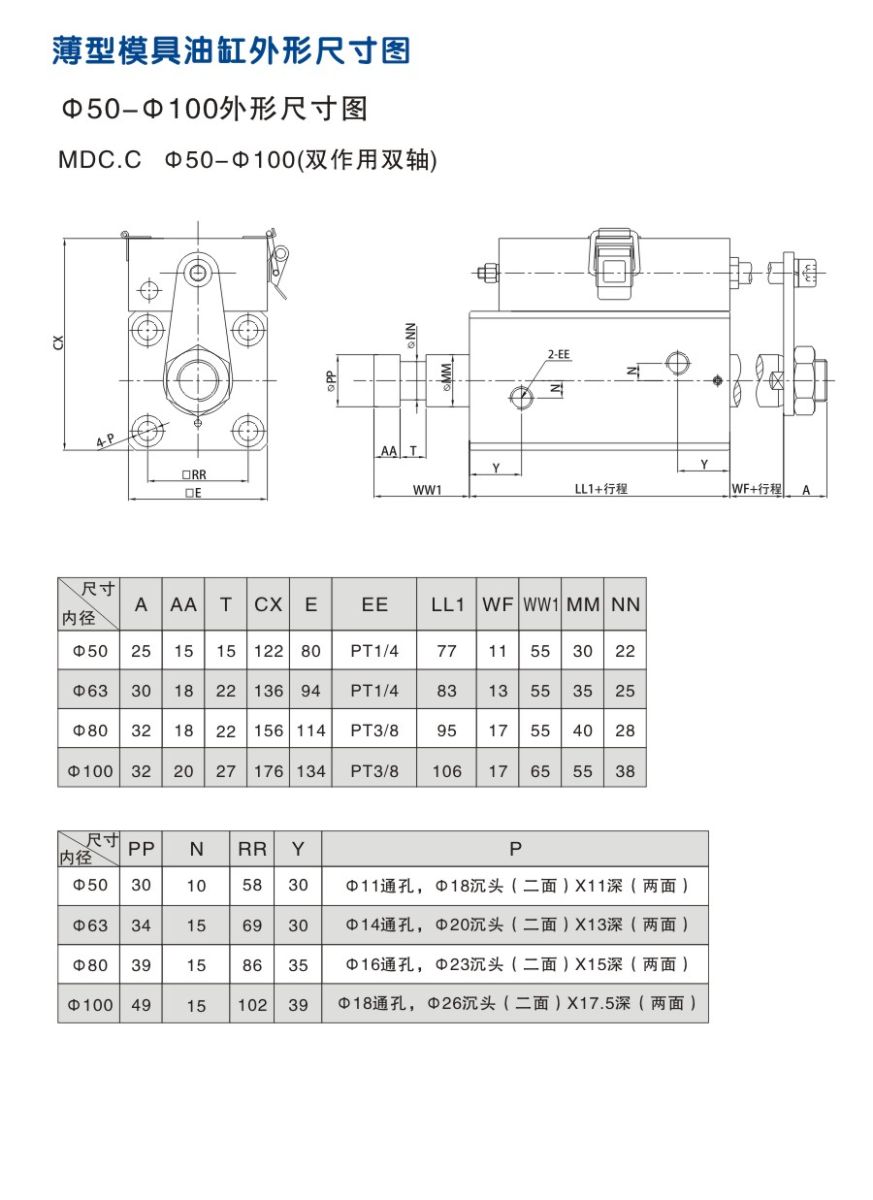 薄型模具油缸 外形安裝尺寸圖